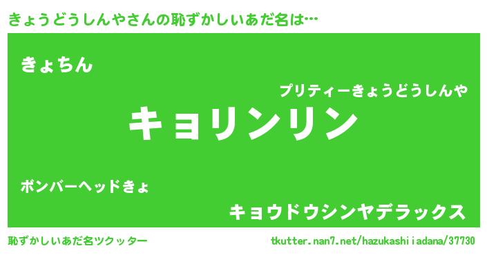 | ヘコむあだ名 | 『きょ太郎』『きょうどうしんや(苦笑)』 |