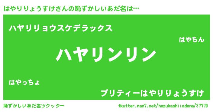 | 男性向けラノベタイトル風あだ名 | 『はやりりょうすけの嫁は女の子じゃないと思った?』 |