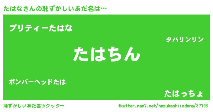 | 男性向けラノベタイトル風あだ名 | 『タハナスレイヤー』『たはなの憂鬱』 |