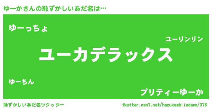 | 意味不明あだ名 | 『なめこ科ゆーか属』『自称ゆーか』 |