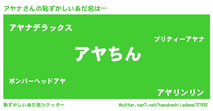| 意味不明あだ名 | 『永久保存アヤナ』『自称アヤナ』 |