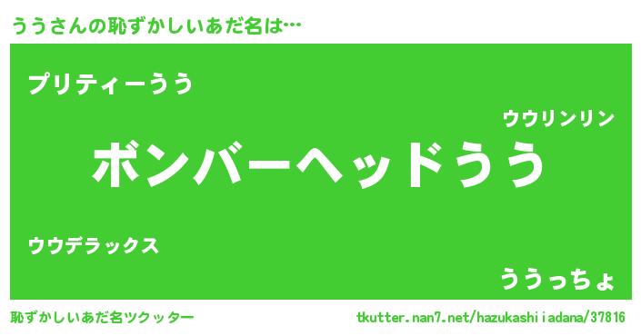 | ヒーロー風カッコイイあだ名 | 『天空の使者うう』『スーパーウウ』 |