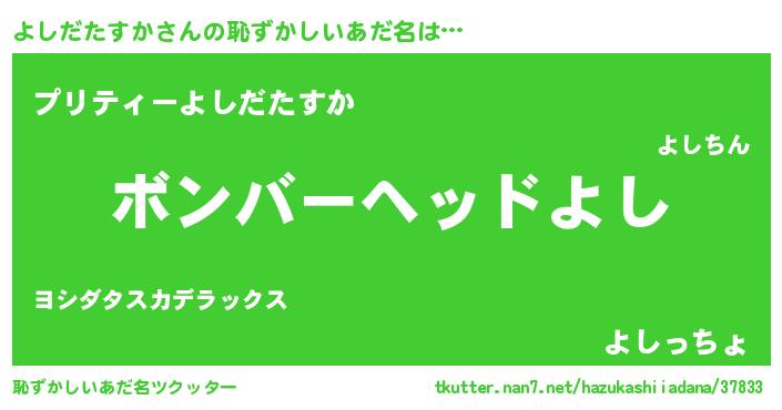 | ヘコむあだ名 | 『よしふぇ~』『なまこ酢』 |