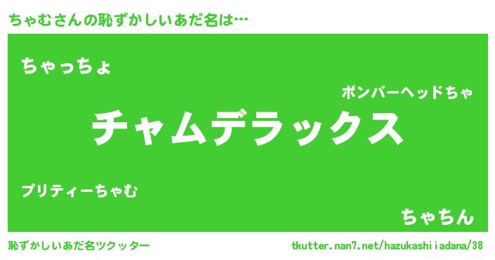 | ヘコむあだ名 | 『なまこ酢』『ちゃむ(震え声)』 |
