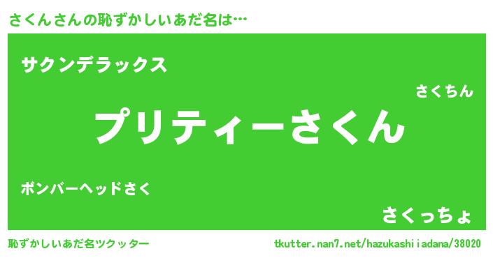 | ヘコむあだ名 | 『さくもー』『豆乳』『さく太郎』 |