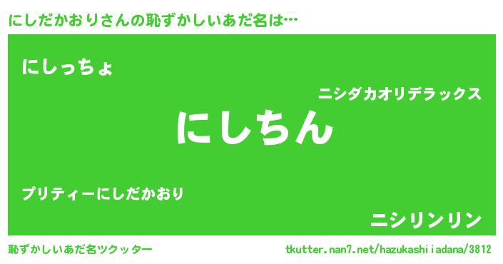 | ヘコむあだ名 | 『にしだかおり(小並感)』『牛乳』 |