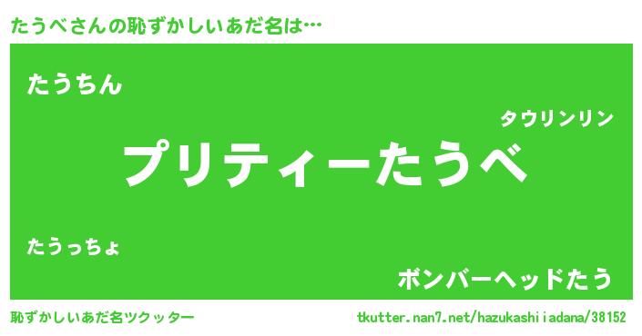 | ヘコむあだ名 | 『たうにー』『たうべ(小並感)』 |