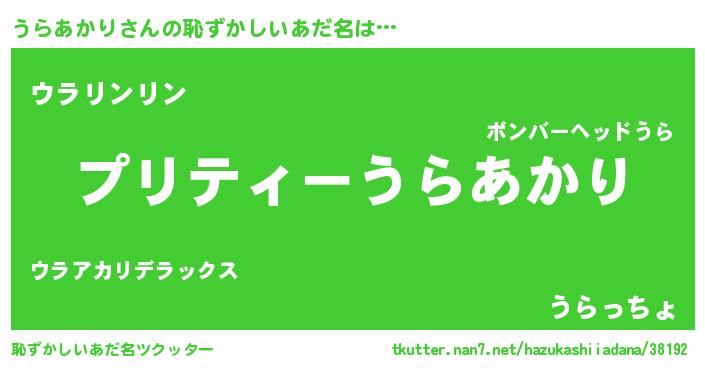 | ヒーロー風カッコイイあだ名 | 『スーパーウラアカリ』『仮面ウラダー』 |