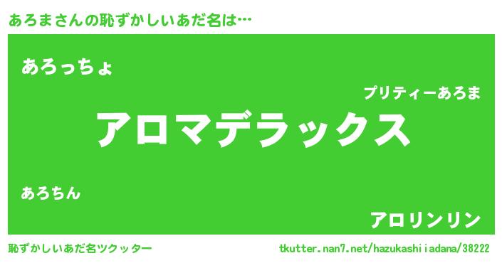 | ヘコむあだ名 | 『豆乳』『あろっぺ』『あろにゅー』 |