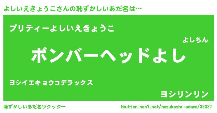 | 意味不明あだ名 | 『住所不定無職よしいえきょうこ(3歳)』 |
