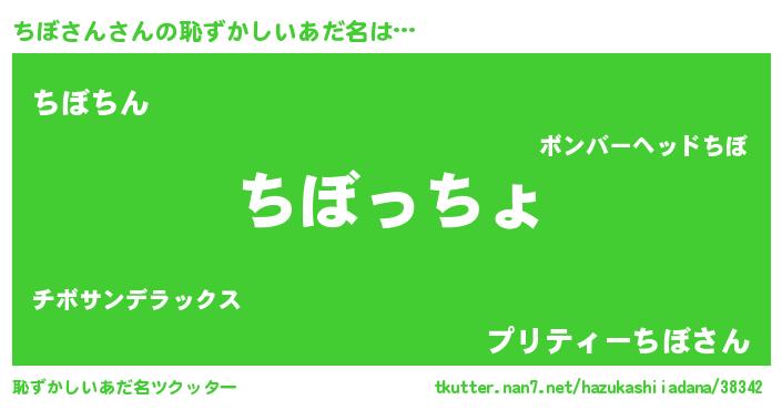 | ヒーロー風カッコイイあだ名 | 『ウルトラちぼさんマン』『ネオチボサン』 |