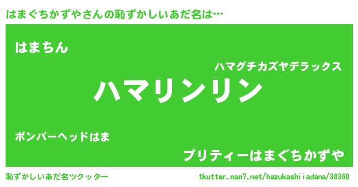 | 男性向けラノベタイトル風あだ名 | 『はまぐちかずやの嫁は女の子じゃないと思った?』 |