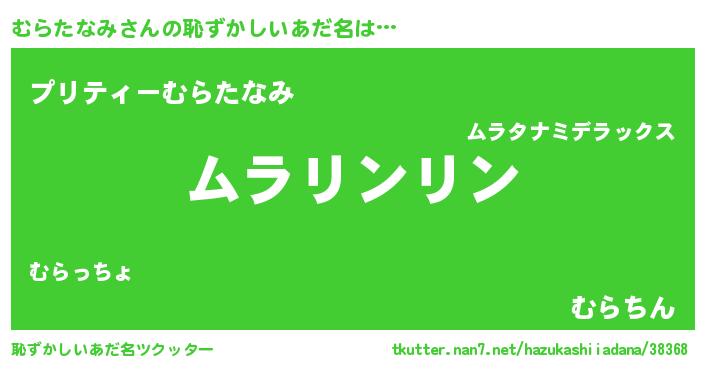 | 男性向けラノベタイトル風あだ名 | 『むらたなみの嫁は女の子じゃないと思った?』 |