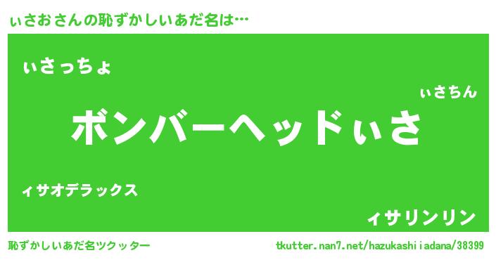| 男性向けラノベタイトル風あだ名 | 『ぃさお~年齢イコール彼女いない歴の魔法使い~』 |