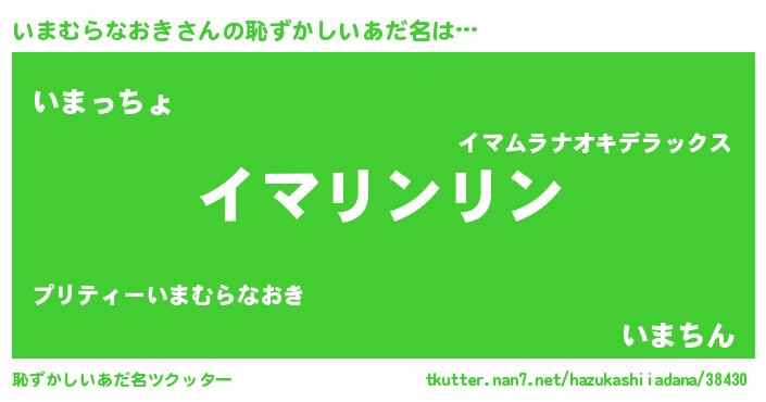| 意味不明あだ名 | 『とにかく怪しいいまむらなおき』 |