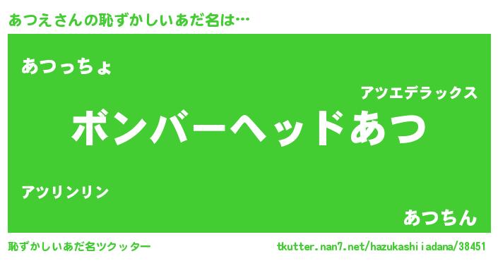 | ヒーロー風カッコイイあだ名 | 『愛の使者あつえ』『ウルトラあつえマン』 |