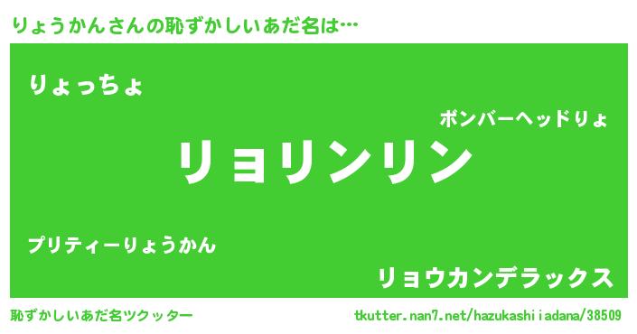| 意味不明あだ名 | 『とにかく怪しいりょうかん』 |