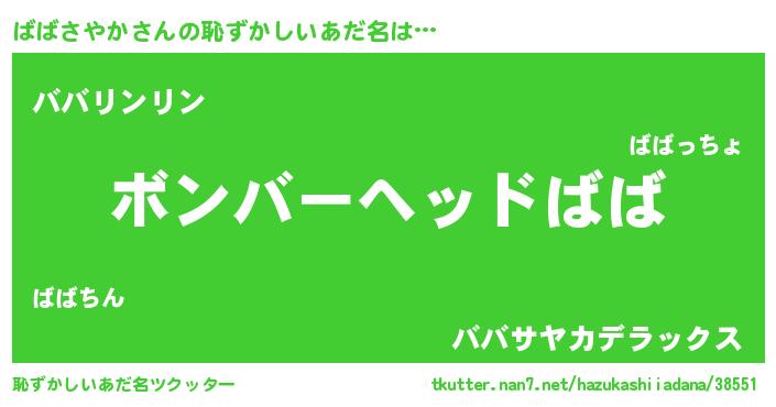 | 女子向けラノベタイトル風あだ名 | 『ばばさやか恋絵巻』 |