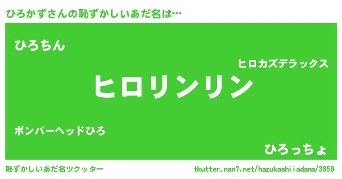| 男性向けラノベタイトル風あだ名 | 『ひろかず~年齢イコール彼女いない歴の魔法使い~』 |