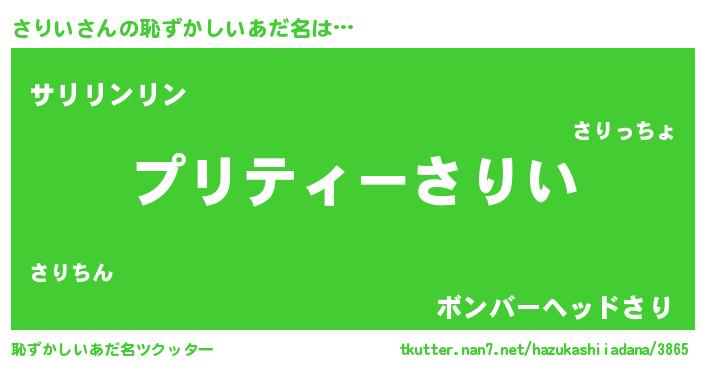 | 男性向けラノベタイトル風あだ名 | 『サリイスレイヤー』『さりいの憂鬱』 |