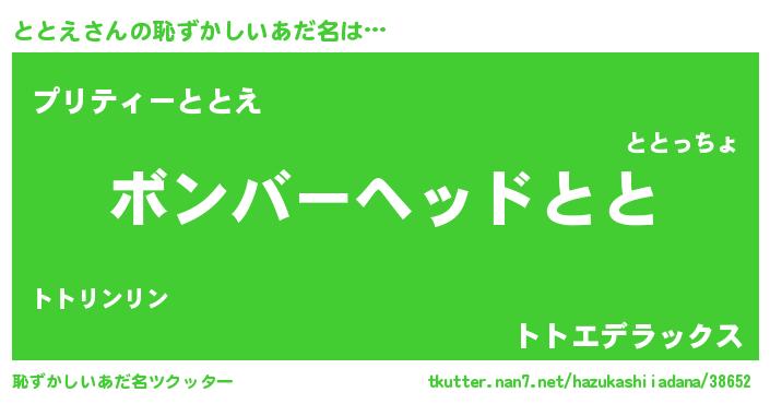 | 意味不明あだ名 | 『住所不定無職ととえ(8歳)』『自称ととえ』 |