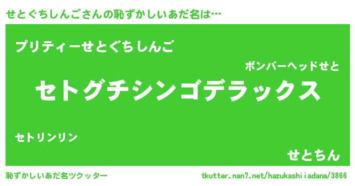 | 意味不明あだ名 | 『自称せとぐちしんご』 |