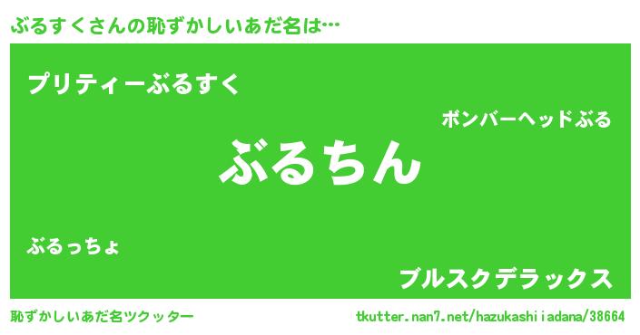 | 男性向けラノベタイトル風あだ名 | 『ぶるすくに滅ぼされるだけの簡単なお仕事です』 |