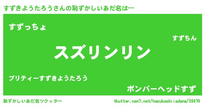 | ポケモン風あだ名 | 『ヒスズキヨウタロウ』『スズゴンZ』 |