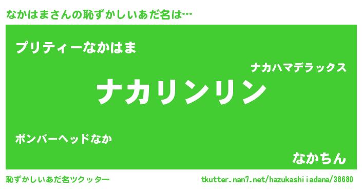 | 男性向けラノベタイトル風あだ名 | 『なかはまの嫁は女の子じゃないと思った?』 |