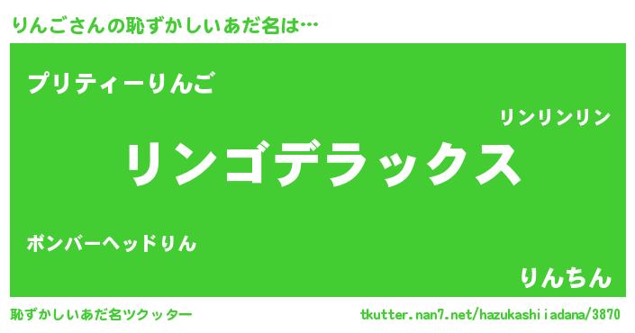 | 男性向けラノベタイトル風あだ名 | 『Re:りんごから始める異世界生活』 |