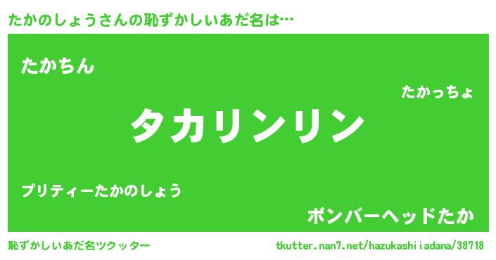 | ヘコむあだ名 | 『たかぷりん』『たかのしょう(遠い目)』 |