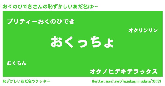 | 男性向けラノベタイトル風あだ名 | 『転生したらおくのひできだった件』 |