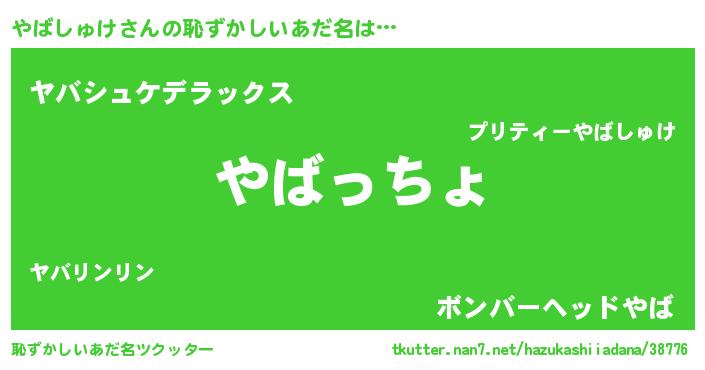 | 男性向けラノベタイトル風あだ名 | 『やはりやばしゅけの青春ラブコメはまちがっている 』 |
