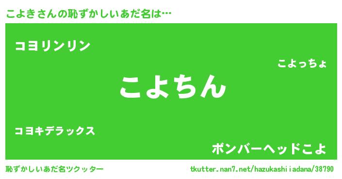 | ヘコむあだ名 | 『こよき(笑)』『こよ太郎』 |