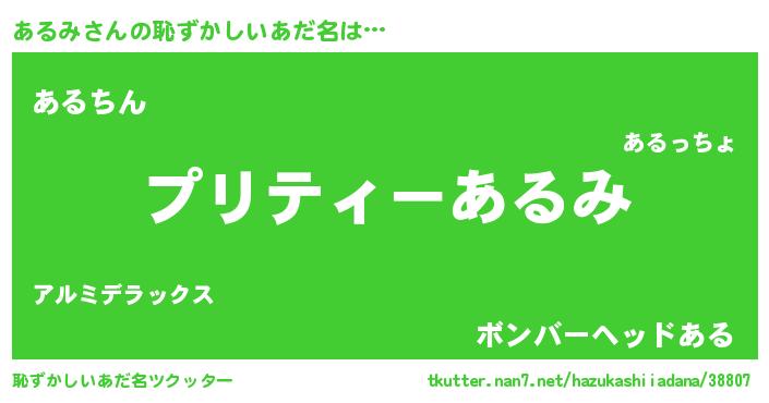 | 意味不明あだ名 | 『ペロリンあるみ』『永久保存あるみ』 |