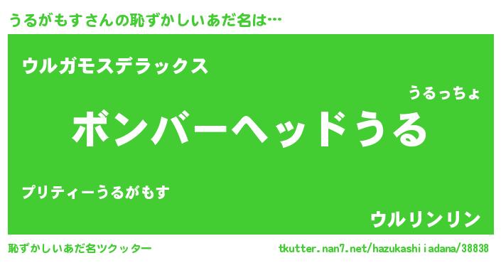 | ヒーロー風カッコイイあだ名 | 『慈愛の使者うるがもす』『幻影騎士ウル』 |