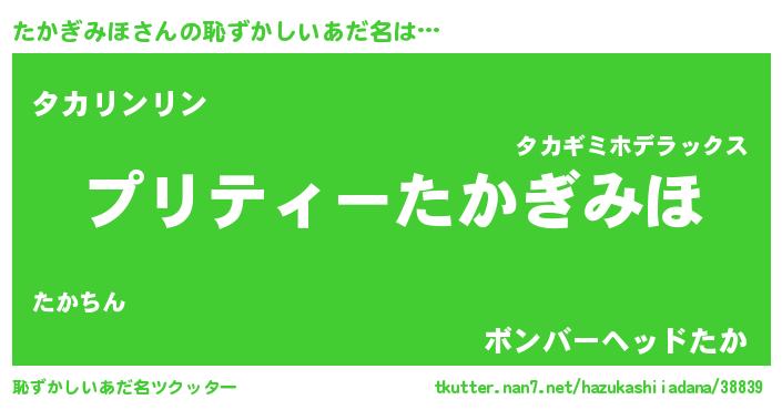 | 肩書あだ名 | 『たかぎみほ御曹司』『たかぎみほ中尉』 |