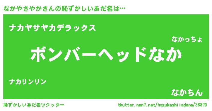 | ヘコむあだ名 | 『なかやさやか(苦笑)』『酢こんぶ』 |