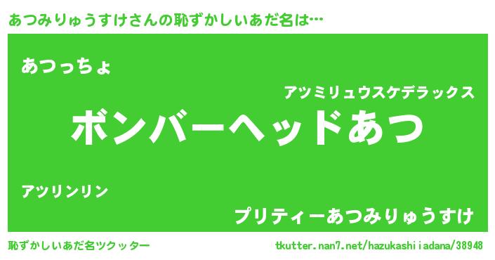 | 意味不明あだ名 | 『眠気覚ましガムあつみりゅうすけ味』 |