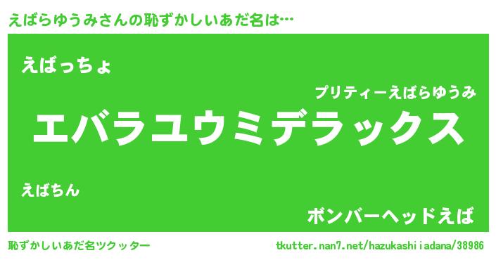 | 意味不明あだ名 | 『住所不定無職えばらゆうみ(6歳)』 |