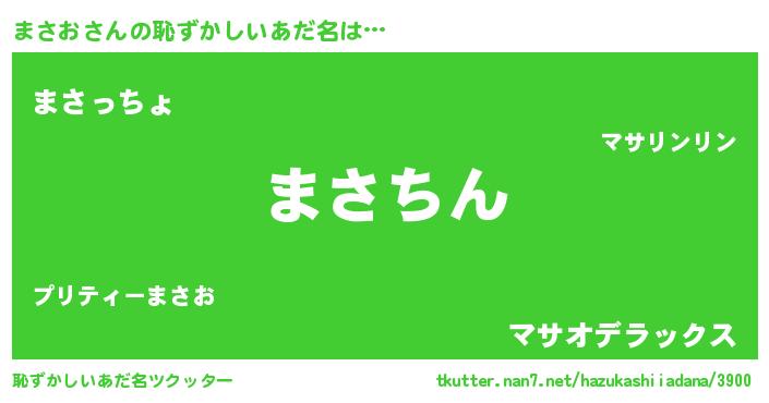 | 意味不明あだ名 | 『もやし科まさお属』『永久保存まさお』 |