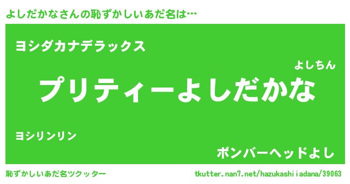 | 意味不明あだ名 | 『ペロリンよしだかな』『自称よしだかな』 |