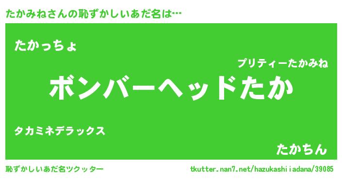 | 意味不明あだ名 | 『住所不定無職たかみね(2歳)』 |