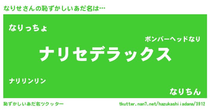 | 女子向けラノベタイトル風あだ名 | 『なりせの玉の輿計画!』『闇のなりせ』 |