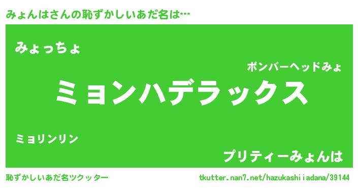 | 意味不明あだ名 | 『自称みょんは』『みょんはフォーエバー』 |