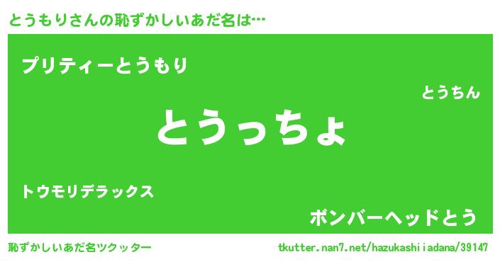 | 意味不明あだ名 | 『とうもりフォーエバー』 |