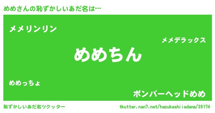 | 意味不明あだ名 | 『住所不定無職めめ(12歳)』『永久保存めめ』 |