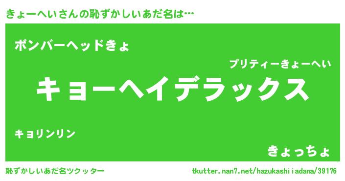 | 意味不明あだ名 | 『自称きょーへい』『ペロリンきょーへい』 |