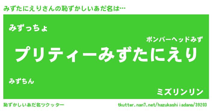 | ヒーロー風カッコイイあだ名 | 『スーパーミズタニエリ』『炎刃騎士ミズ』 |