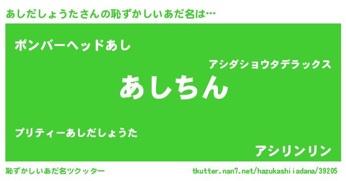 | 意味不明あだ名 | 『永久保存あしだしょうた』 |